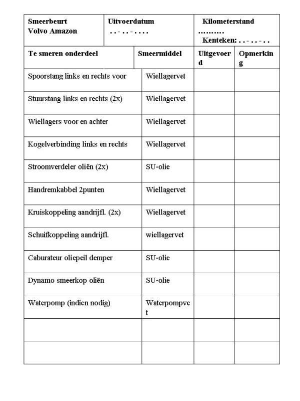 Zojuist een smeerschema gemaakt uit het orginele onderhoudsboekje voor de aandrijflijn e.d. Mochten mensen hier interesse in hebben dan wil ik deze wel op de site plaatsen.