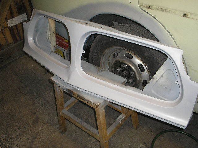 </p><p> </p><p>Het oude front had al zijn vorm verloren na een aanvaring met een grote vogel, dus bij de buurman een goede tweede hands gekocht, gestraald en in de zinkspray en primer gezet. Toen ook gelijk maar alles aan de voorkant geschuurd en ook in de zinkspray en primer gezet.</p><p>