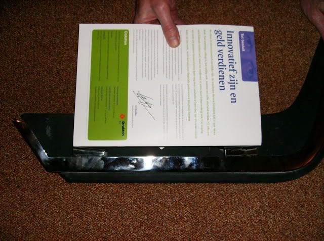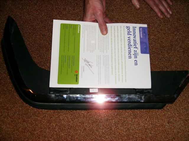 Na het nogmaals bekijken van de delen voor de voorbumper, kwam mijn vader tot de ontdekking dat de bevestigingspunten van de bumper niet allemaal gelijk zijn. twee van de vier delen (linksachter en rechtsvoor) hebben een schuine hoek voor de bevestiging, de andere 2 zijn vlak. Ter verduidelijking een paar fotos: