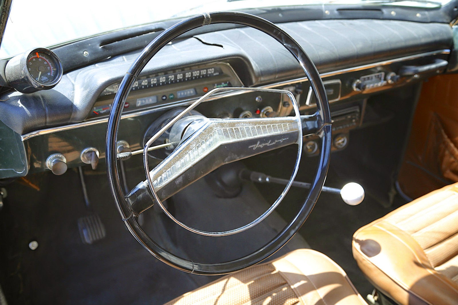 De chokeknop zit op het dashboard; de knop voor het openen van de motorkap eronder. Op deze foto kun je het een beetje zien: