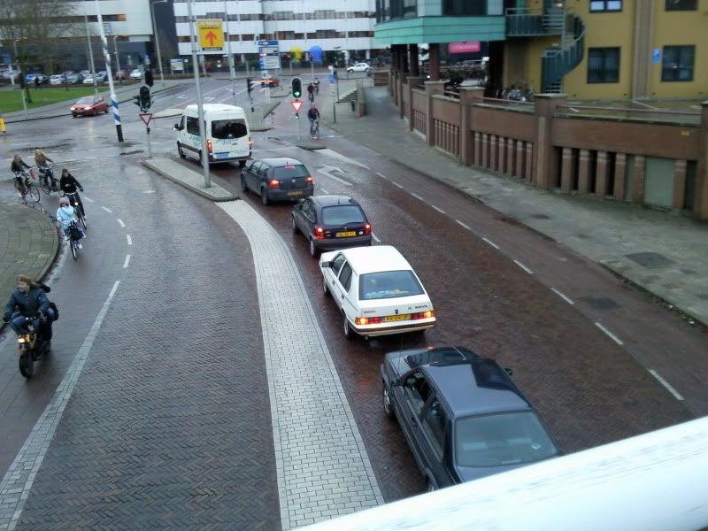 De tweede 340 was antracietgrijze 5-deurs in GL-uitvoering. Het kenteken was ZK-77-LJ. Deze 340 kwam zeer toevallig voor m'n lens, want ik wilde de twee gele voertuigen op de achtergrond op de foto hebben.
