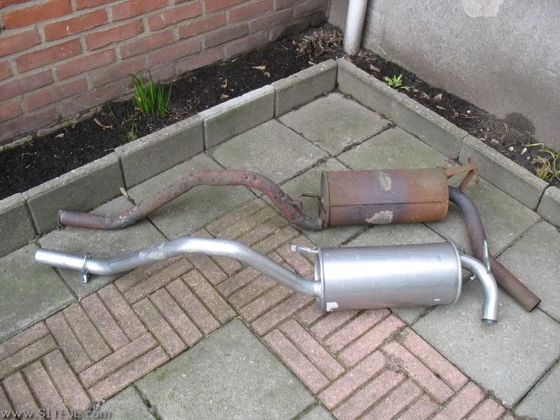Achterpijpje was incl. bevestigingbeugel en verzendkosten ? 19,- bij Winparts. Daar is de einddemper stukken duurder trouwens en `t beste kan je natuurlijk proberen een einddemper uit 1 stuk aan te schaffen.