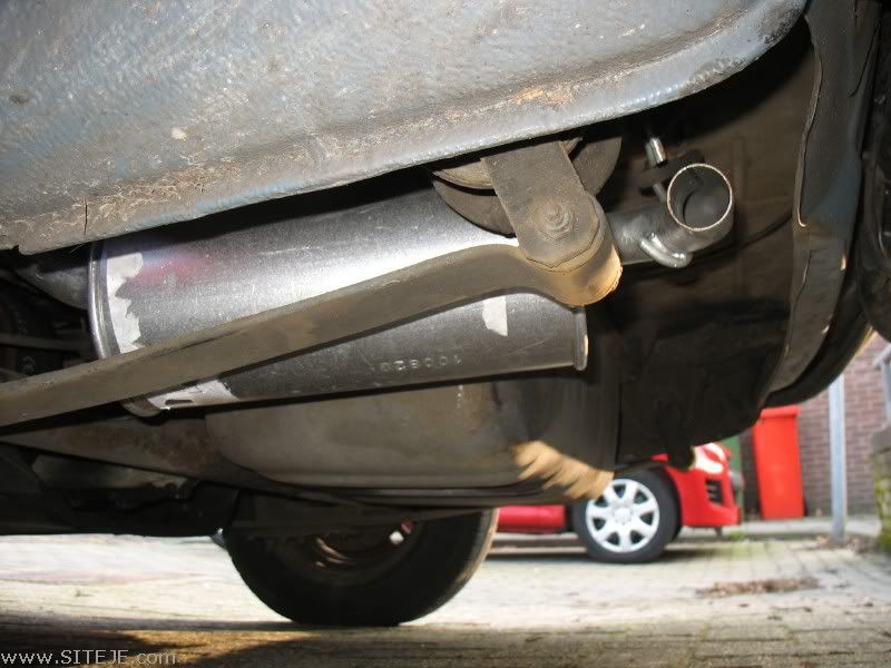 Idioot gewoon dat die einddemper zo geleverd wordt. Het enigste wat ik kan bedenken is dat je op deze manier het nog te bevestigen eindpijpje kan stellen zodat die mooi onder de auto uitsteekt.