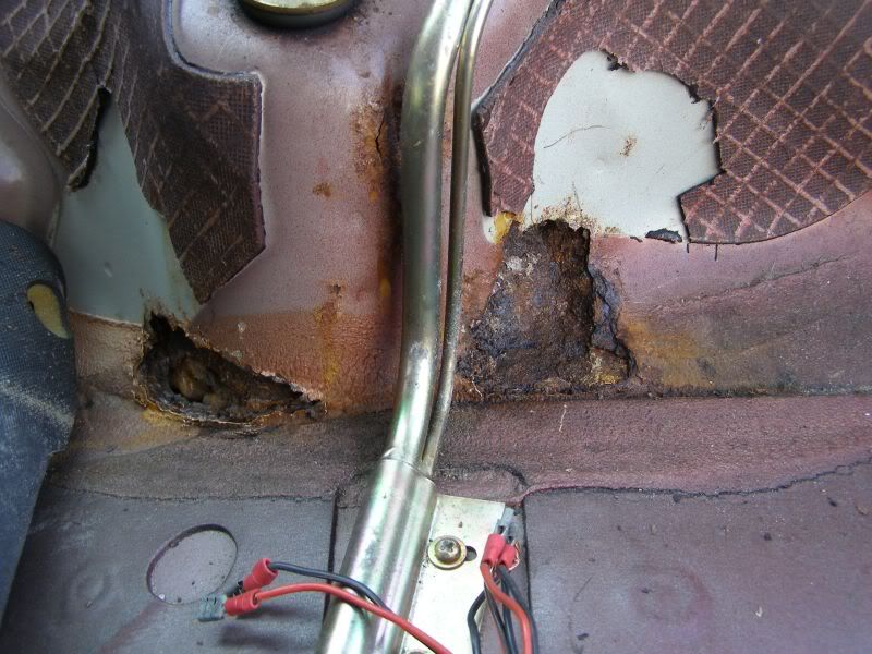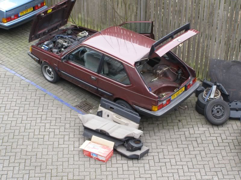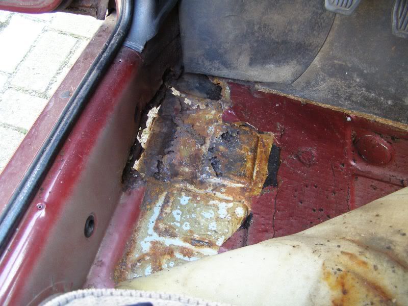 Het ding is werkelijk van voor tot achter rot. Voorbalk zit al niet eens meer vast aan de carrosserie erachter. Voorschermen zijn rot. Binnenschermen ook hartstikke rot(als je ertegen aan slaat vallen er hele stukken roestig staal uit). Deuren zijn rot. Paravan heeft plekken. Motorkap doorgeroest van binnen uit, links en rechts. Dorpels links en rechts vol enorme gaten. Bodemplaat meerdere rotte stukken, van binnen kijk je zo op het asfalt. Geen enkele kriksteun is nog te gebruiken; de krik zakt overal doorheen. Wielkastranden achter doorgeroest. Rand van wielkast aan de binnenkant rechts doorgerot, links hard op weg. Achterschermen onder de bumper; binnenpanelen reiken niet meer tot de onderkant; het is gewoonweg weggerot. Behalve dat heeft de carrosserie veel deuken en is de lak ronduit lelijk.