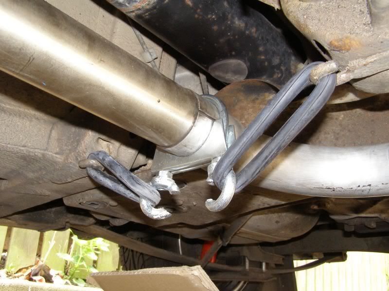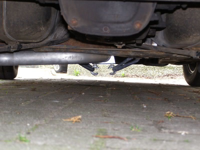Op de eerste foto is goed te zien dat de uitlaat niet meer laag hangt. Volgens mij is deze stand normaal. Op de laatste foto zie je wel dat die ringen waar de rubbers aan zitten enigzins laag hangen, misschien moet ik daar nog maar wat op bedenken.