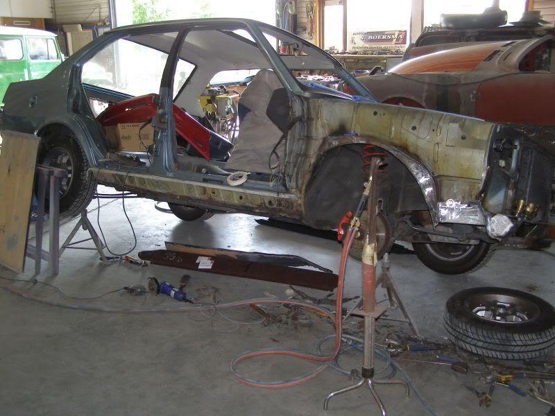In ieder geval, het begint erop te lijken! Het werk wat ie tot nu toe gedaan heeft lijkt erg netjes te zijn. Over twee weken is de wagen waarschijnlijk 'in kleur', wat volgens mij inhoudt dat het dan nog een week duurt;)