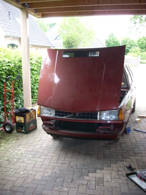 Het ding naar achter gedrukt, even wat zaken gemonteerd, op de krik, en schroeven maar.