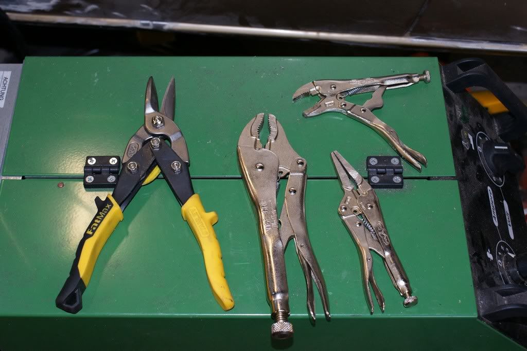 Setje nieuwe tangen, Een setje Vise-Grip en een plaatstaalschaar om de plaat mee te lijf te gaan! Knipt lekker!