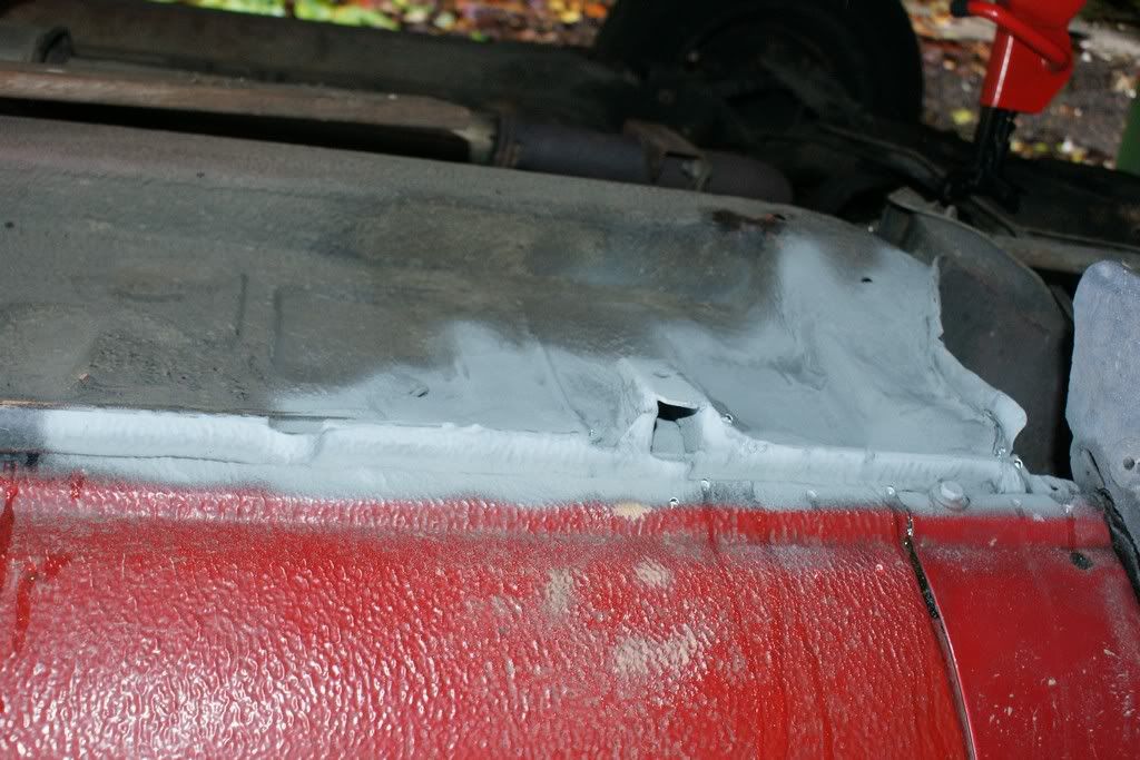 Hier nog een betere toplaag aangebracht, deze is natuurlijk net wat harder dan de zinkprimer! Ook hier ging het drogen traag, dus maar even een mobiele electrische verwarming in de auto gezet...:halo: Was opeens zo droog!