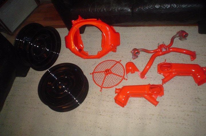 Uiteraard had ik nog wel een ander setje liggen, en een vriend van me had ook nog wel wat te coaten. Hij heeft een 2CV, waar hij een pick-up van bouwt. Leuk project! Maar goed, twee weken geleden alles naar de poedercoater gebracht, en vandaag alles opgehaald. Zie hier een kleine impressie van het resultaat: