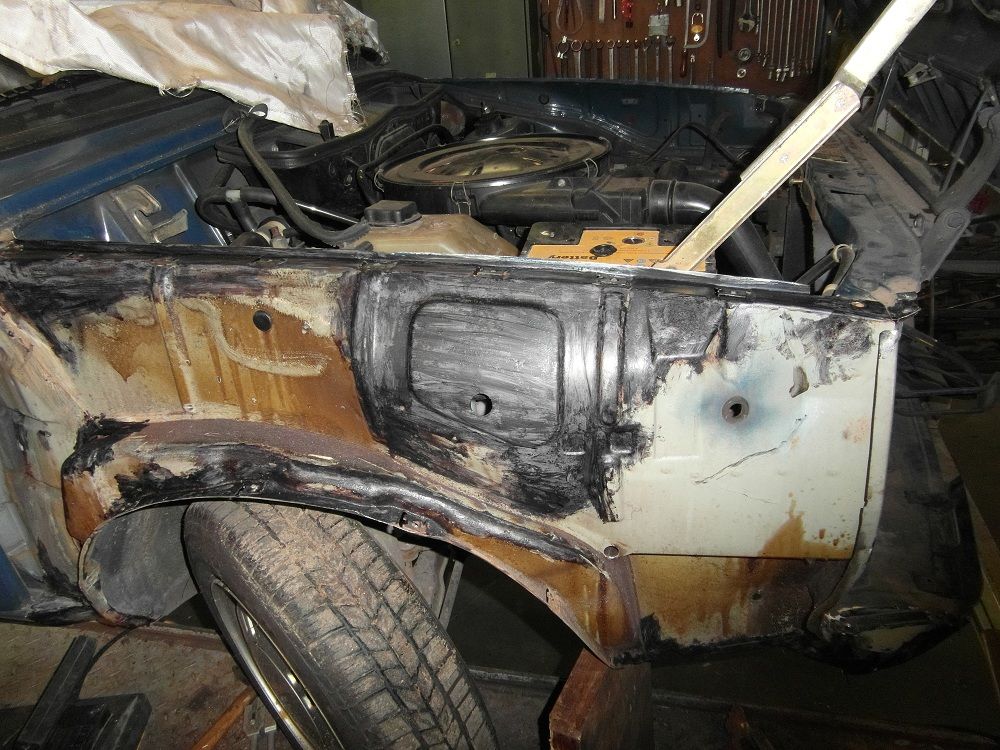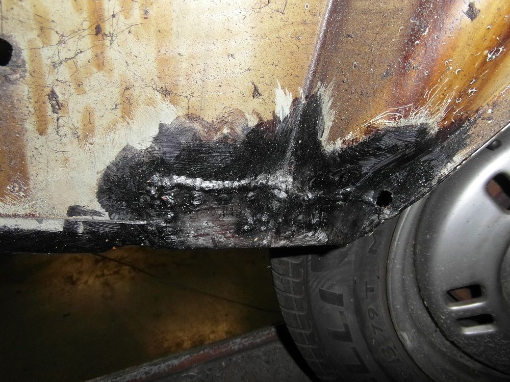 Moet nu alleen nog de voorbalk uitstukken en nieuw lassen, kriksteunpunt RA en de rand van de kofferbak hoewel dit niet zo storend is.