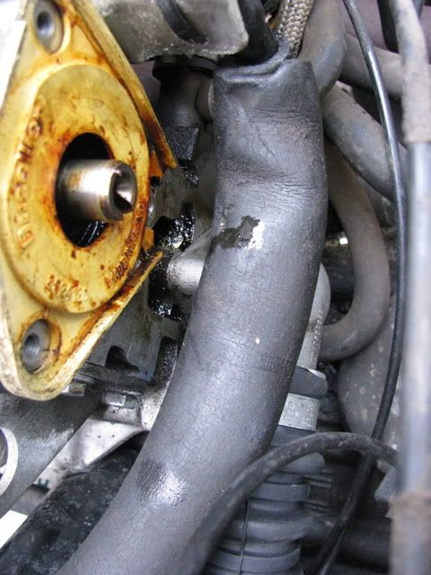 De slang er onder oogt ook niet meer zo fris... Hier stroomt verder niks door geloof ik, maar ik ga het binnenkort toch vervangen door een net exemplaar.