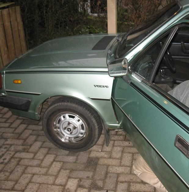 Deze foto vond ik nog, is van ong. een maand geleden. De enige foto van de auto n? zijn eerste wasbeurt in jaren. De chromen wielsierringen glimmen als een malle en de velgen zelf zijn ook nog erg mooi. De lak van de auto begon ook weer behoorlijk mooi te worden!