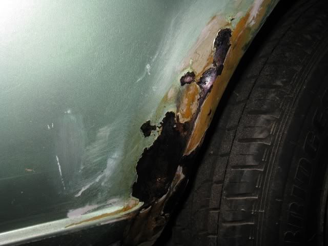 zoals ik al verwachtte ziet het er niet uit, maar het is iig beter dan die bruingele opgekwaste zooi en witte gebarsten plamuur achterop bij de wielkast.