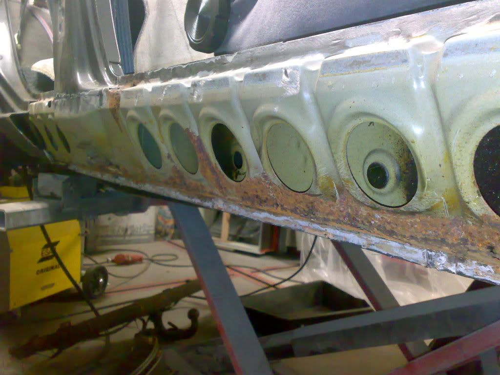 Dit isdan de binnen koker. Zoals je ziet zit hier ook roest. Normaal kun je dit bijna niet behandelen. Je komt er gewoonweg niet bij. Alle roest is verwijdert en behandelt. Daarna hebben we de buitkoker er weer tegen aan gelast. Orginele puntlassen losgeboord, zodat we deze met bevestigen weer konden proplassen. Auto blijft dus netjes e orgineel. ( op dit vlak dan... ha ha. )