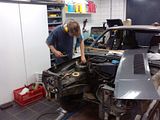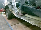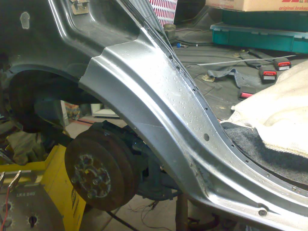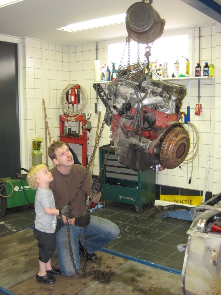 Dit ziet er dan weer minder uit. De donor auto wordt stukje bij beetje ontdaan van zijn delen. Koker bewerkt en in de andere auto gezet, zie andere foto's.