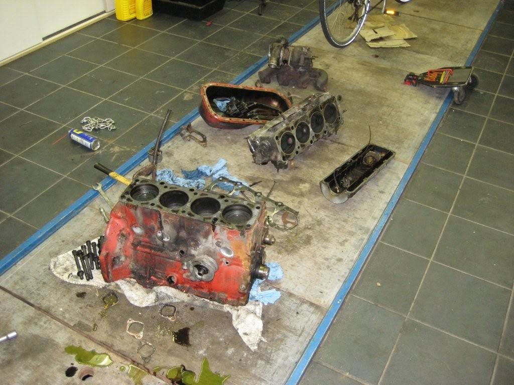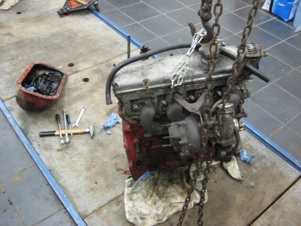 Ik ben begonnen met een motor uit een 240 turbo. Dit blok heb ik helemaal uit elkaar gehaald. Alle lagers zijn vervangen en de motor is gehoond. Ook alle pakkingen zijn nieuw.