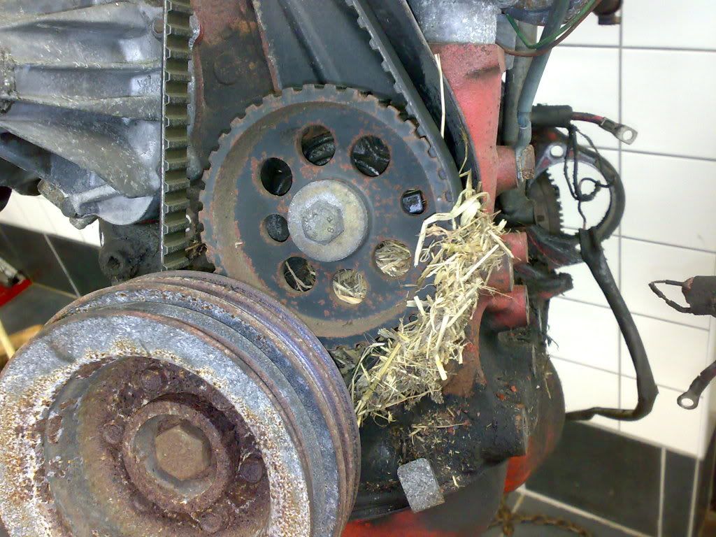 Voordat ik de motor uit de 240 heb gehaald heb ik deze nog wel even aan het lopen gemaakt ,om te kijken of het blok geen motorschade had. Motor liep, ook al was het onregelmatig. Had ook al een aantal jaren niet meer gedraaid.Later toen ik aan het gemonteren was, kwam ik dit tegen!!! Er was eens een muisje.....