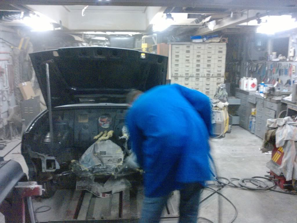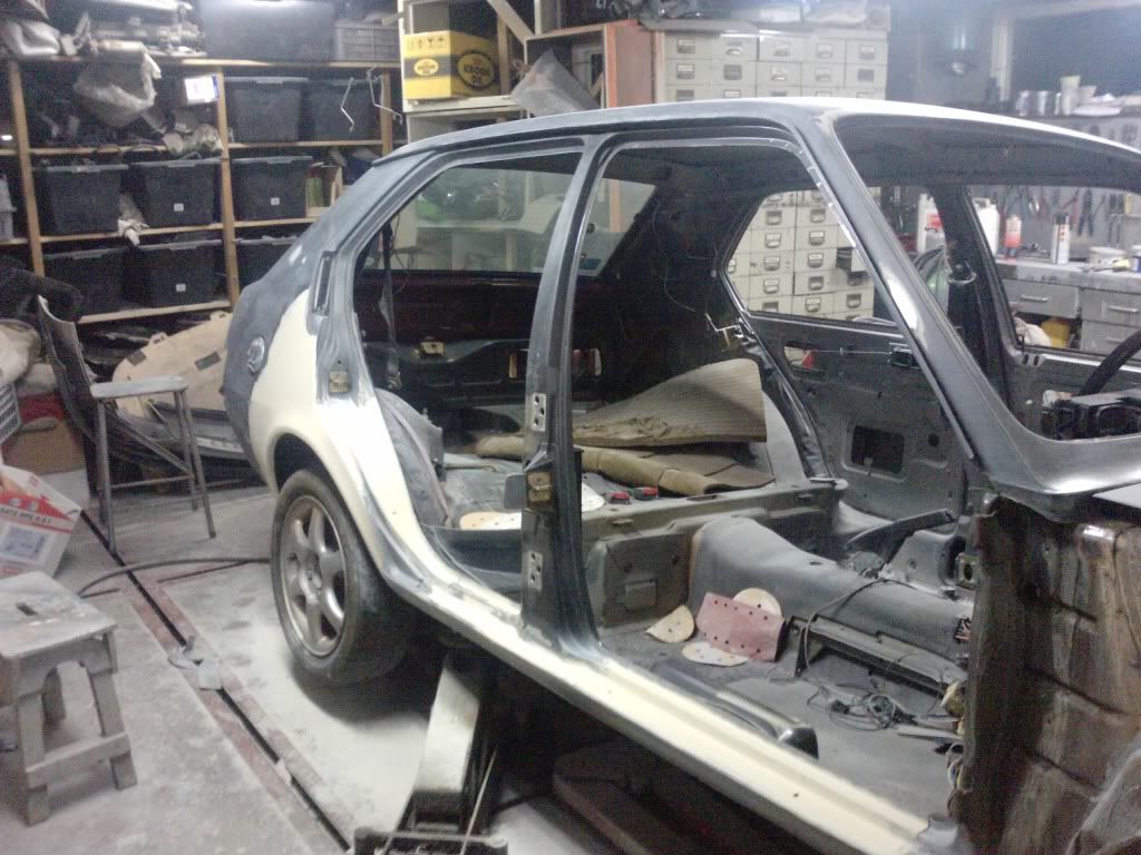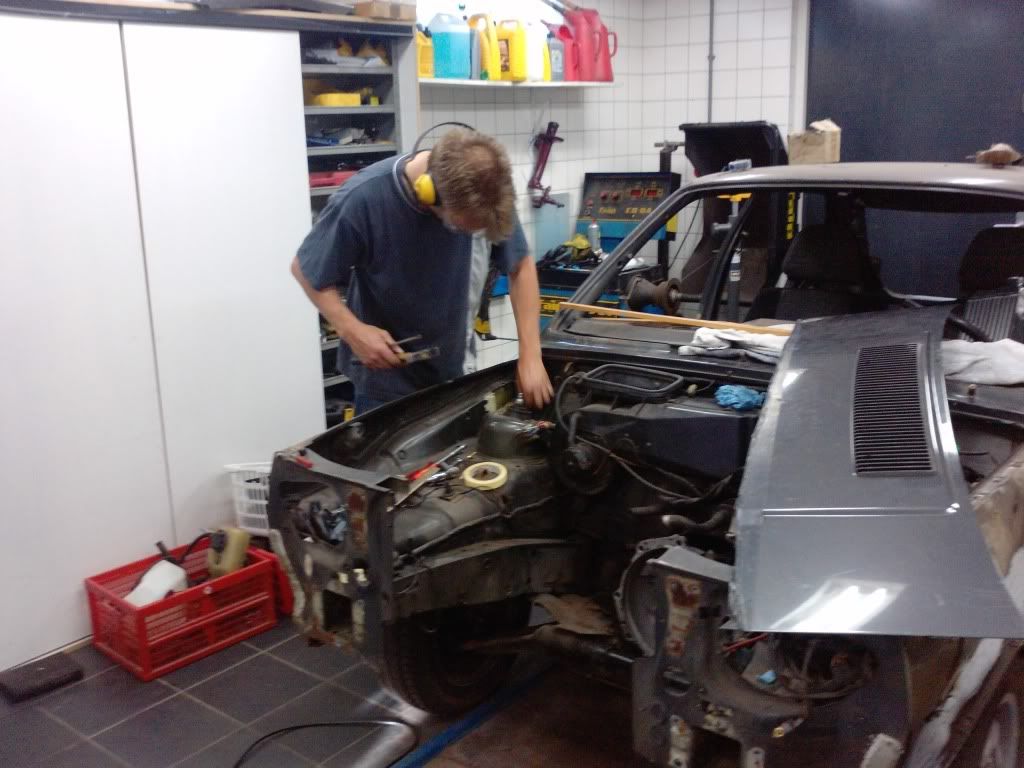 alles nagelopen en geplamuurd waar nodig. De auto had in een schuur gestaan en er hadden kinderen op het dak gedanst. Maar ja , hobby is hobby. Twee weekjes aan het strak maken geweest.