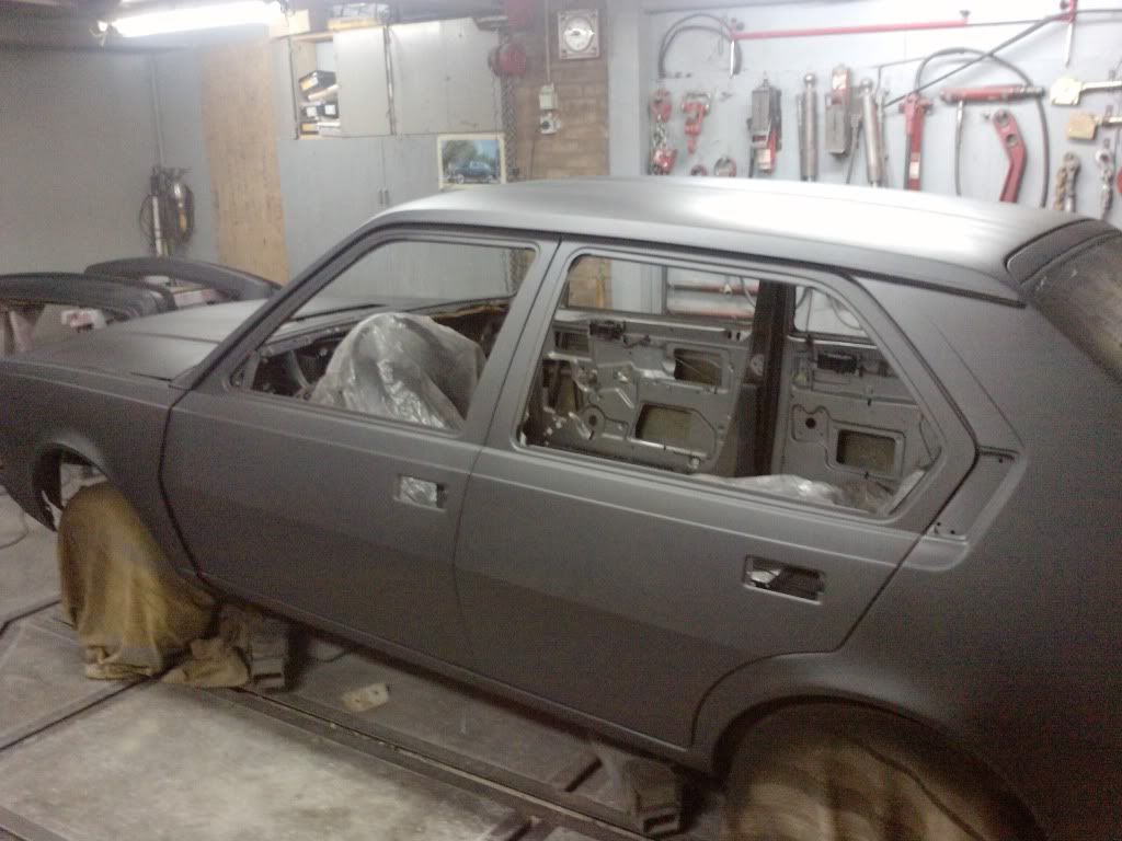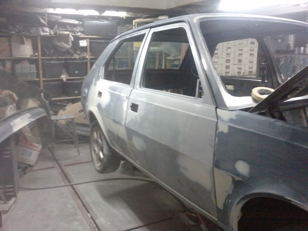 De rest van de auto is natuurlijk ook helemaal aan gepakt. alle slechte plekken aangepakt. Ik wilde toch al een andere kleur dus het maakte ook niet uit dat er een paarse acherklep, een grijze deur en motorkap op kwam. Ook heb ik de auto eerst helemaal afgebouwd met motor en al om er zeker van te zijn dat als ie gespoten zou zijn er niks meer aan veranderd hoefde te worden.