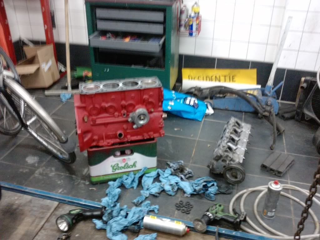 Ontsteking lv op het blok en rechts voor op de kop zit nog de steun van de inspuitleidingen!