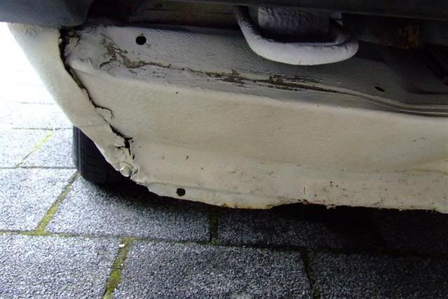 De modder en andere delen komen door de grote gaten (ook op foto zichtbaar) boven de balk binnen als het voorwiel draait en je een bocht maakt. Hierdoor wordt een hoop ellende naar binnen geslingerd. Ik heb Volvo wel eens om afdekkapjes voor dit gat gevraagd. Het antwoord was simpel en duidelijk: deze afdekkapjes bestaan niet.