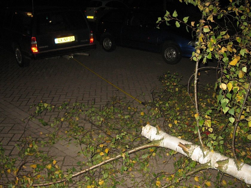 Edit: het bovenste stuk hebben we afgezaagd, maar toen de onderste helft van de stam en de stronk nog... het werd al donker dus hoppa, dan maar even de 740 om hulp vragen