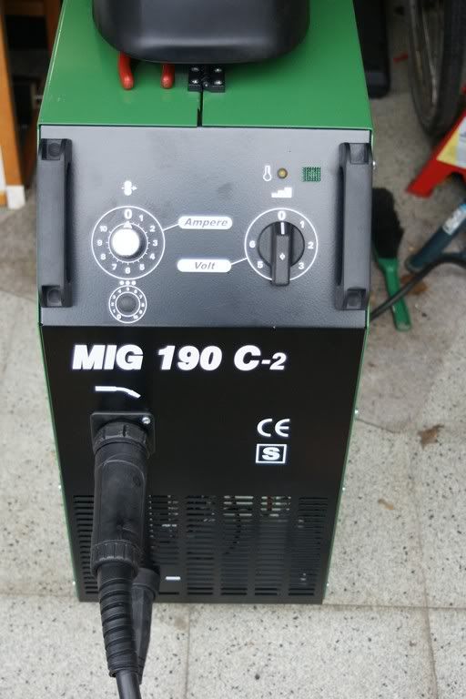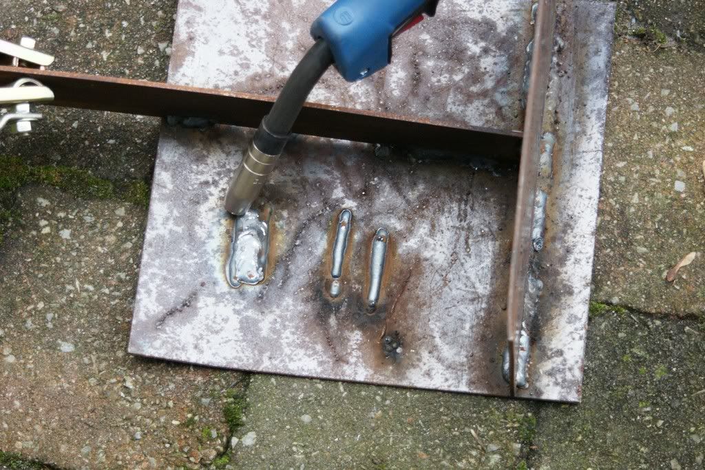 Een paar proeflasjes... Ben helaas moeten stoppen want het begon te regenen en in een volle garage lassen lijkt mij nog niet helemaal verstandig!