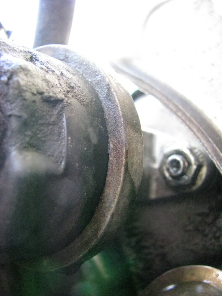 Van de week de kleppendekselpakking nog eens vervangen, maar ik vrees dat het dat niet is :hmmz2: Bij de voet van de carburateur zag ik namelijk ook wat olie, en tegen het blok ook (zie foto's)