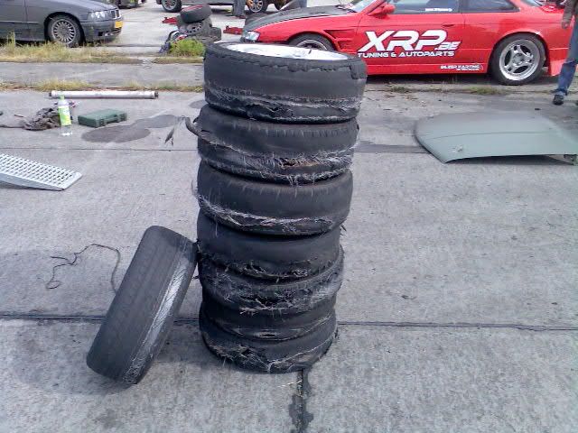 Om 16.00 uur was het zo ver. Ieder mocht 3 runs rijden op punten. Deze werden weer bij elkaar opgeteld en vormde dan het eindpunt. Jammergenoeg was de baan 't laatste uur niet meer natgemaakt. De banden verslijten dan heel hard. Ik ben op gegeven moment maar gestopt wanneer het profiel van de banden af was, stel je voor dat je band klapt wanneer je op punten aan het rijden bent.......... dankzij de zon werd de baan als maar droger, ik vreesde het ergste: dat ik dus te weinig vermogen zou hebben. Op gegeven moment was het mijn beurt: ik wist dat ik zo hard mogelijk moest smijten om de auto in de drift te houden, na de eerste 3 bochten kwam de 180 graden-bocht; inremmen, stuur om..... SHITTTTTT!!!!!! ik stond achterstevoren, was compleet verrast! Wat een blunder! 0 punten. De volgende run wou ik koste wat koste niet spinnen en heb op safe gereden. De run ging aardig maar niet perfect. De 3e run was m'n laatste kans. Hij gin perfect! Ik kon nog net de auto in bedwang houden. Nog enigszins tevreden stapte ik uit. Toen de toeschouwers mij vertelde dat iedereen gespint was kreeg ik weer hoop. De jury kwam ons vertellen dat ik tweede was. Het kon beter, weet ik. Maar ik was meer dan tevreden.