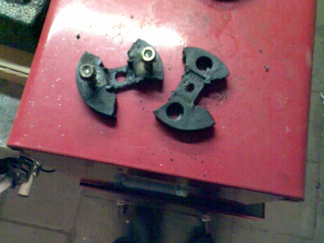 Daarnaast komen we bij het volgende onderdeel. Waar voorheen de koppeling de cardanas beschermde, helpt hij deze as nu naar de sodemieter. Gisteren "slechts" 1 cardanas versleten dus. Wanneer 't vermogen omhoog gaan wordt 't niet leuk meer. Dat wordt snel tijd voor een alternatief!