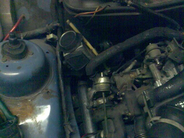 Eerst de koelleidingen van de Turbo maar eens aangesloten, jammergenoeg moest de complete turbo daar weer voor af.........handig gemaakt stelletje Franse