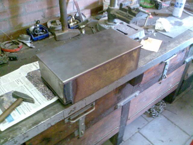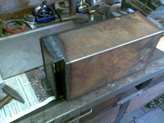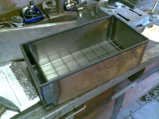 Dus een bakkie gemaakt. Aan de binnenkant op de bodem gaas vastgelast zodat hier 't 1 en ander aan vastgemaakt kan worden.
