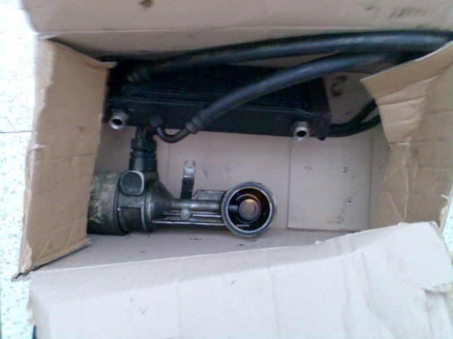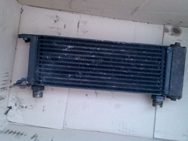 Aangezien de 18-rijige oliekoeler (die ik bij Biesheuvel heb gekocht) iets te groot was had ik een probleem met inbouwen. Deze oliekoeler is een stuk kleiner (12-rijen). Deze ga ik dan ook inbouwen.