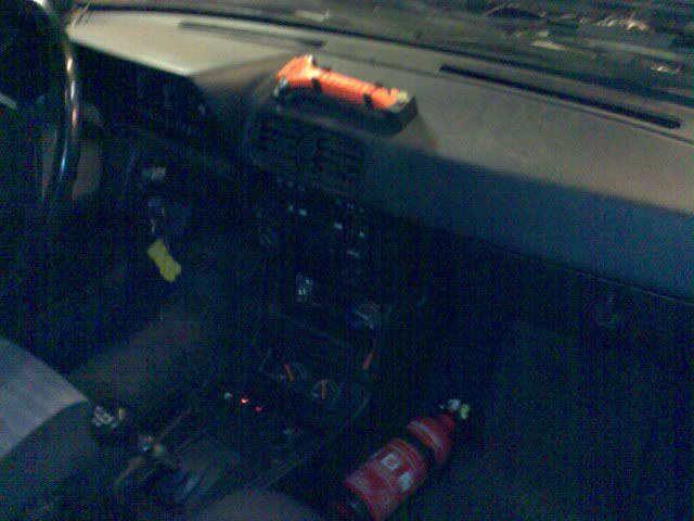 Net voor de versnellingspook zitten de schakelaars (met indicatorlights) voor de koelfannen welke ik allemaal apart kan schakelen. Bij de voeten van de passagiersstoel heb ik een nieuwe brandblusser gehangen en een life-hammer op 't dashboard; veiligheid voor alles.