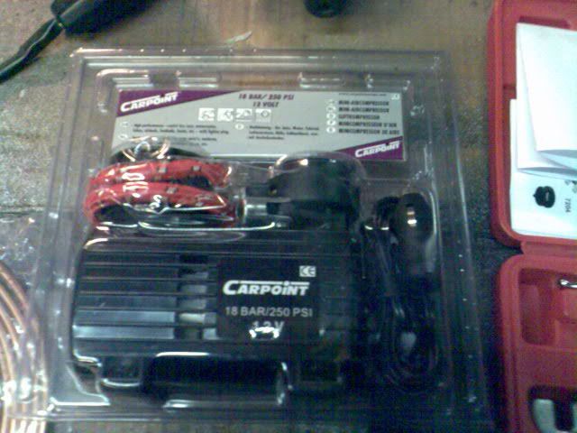 Compressortje om bij 't driften op circuit de bandendruk te regelen: altijd makkelijk!