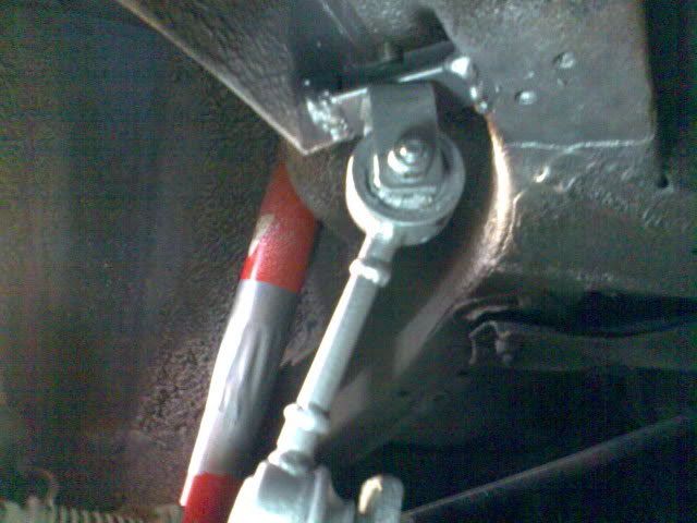 Eerst de bevestiging aan het chassis. Gewoon een hoeklijntje 30x30x3 gepakt, gat erin geboord waarin de arm van de reactiestang zit bevestigd. Daarna het stukje hoeklijn tussen de chassisbalk en de wielkastrand ingezet en vastgelast.