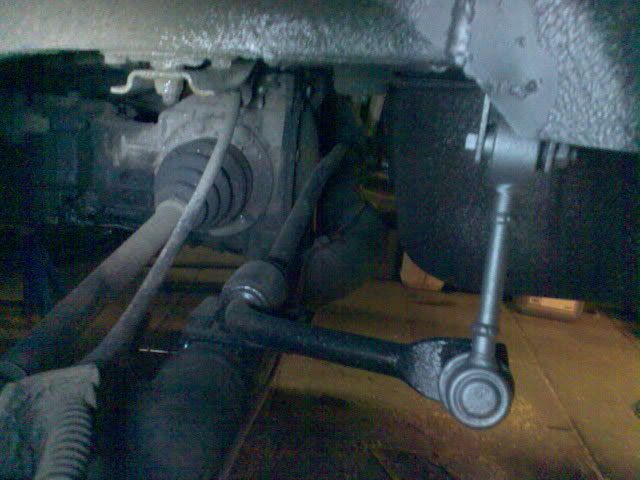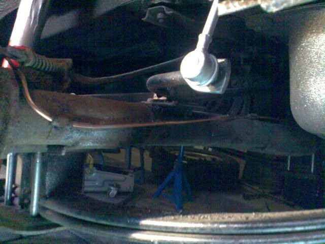 Merk op dat de stabilisatorstang rechtsom draait bij het inveren. Aangezien de auto maximaal is uitgeveerd op de foto (de auto staat van de grond) zal de stabi-stang het diff nooit raken.