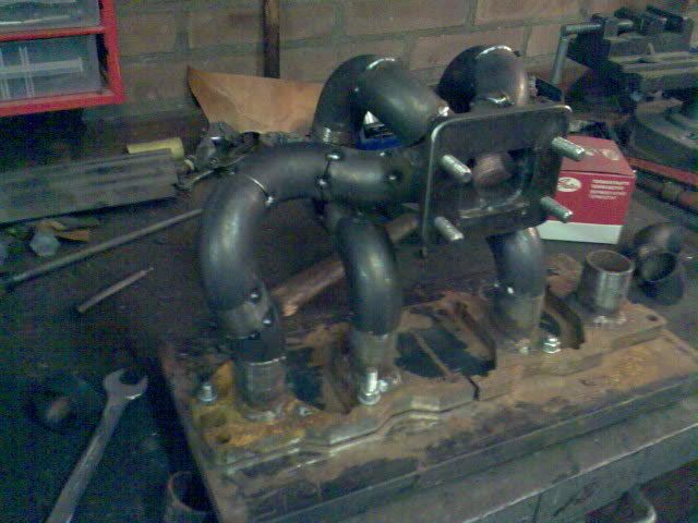 Daarna met de collector aan de gang gegaan. Eerst eens goed zitten te denken hoe ik de runners wou laten lopen. Daarna alle pijpjes op maat gemaakt voor de collector. Een half uurtje slijpen liet het gedeelte netjes passen.