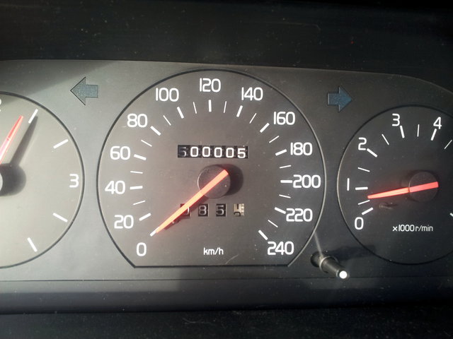 Niet al te duidelijk, maar 16-09-2013 is ie de 5 ton gepasseerd. Zet maar in de lijst met 500005 op 16-09-2013. (nu staat de teller op 500060, maar die stand is niet zo leuk)