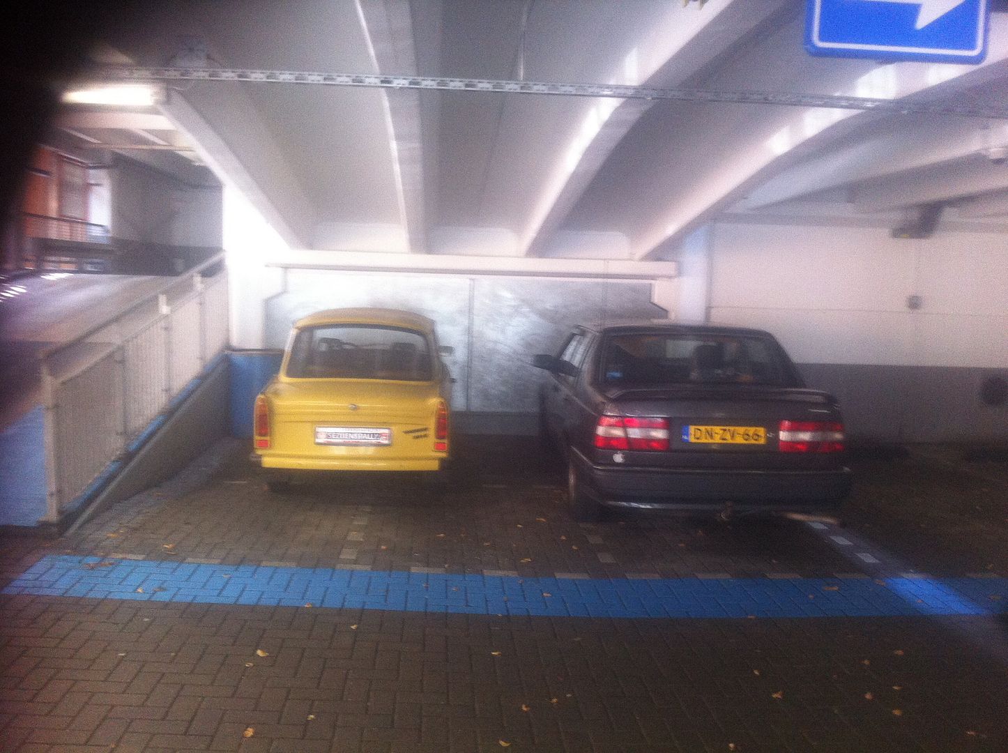 Eerste week geparkeerd naast een Trabant, vond het verschil in grote nog al opvallend